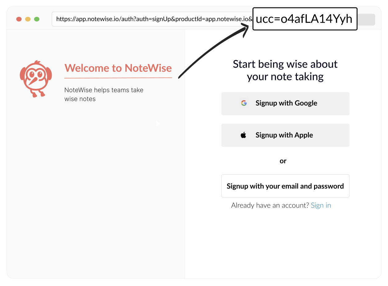 ucc- to capture and later access the referral code, add Attribution library to your asset landing page. It will storeuccin the cookie and make accessible at the point of signup- a source tracking param - make sure you store this param in the cookie, to be accessed later at the point of signup, even for returning visitors.